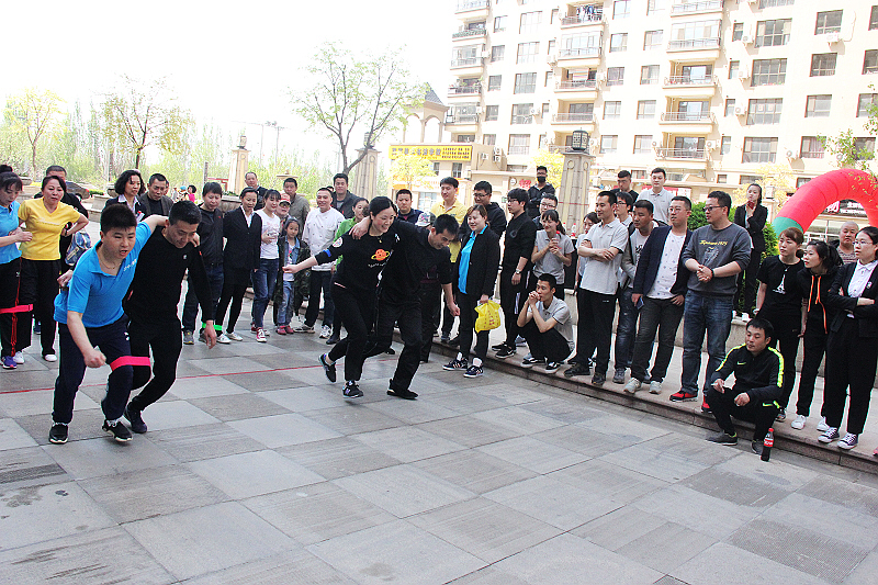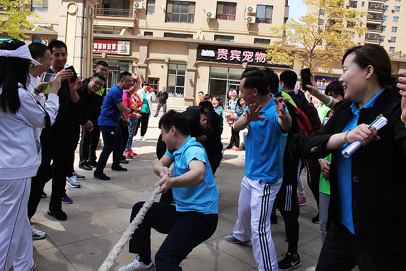 本屆運動會共設(shè)團體和個人兩類項目。團體賽共分拔河、三腳接力、齊心協(xié)力、托球接力和合作運球接力五項比賽。個人比賽為跳繩和乒乓球。首先進行的是拔河比賽,各代表隊分別派出10名選手參賽。隨著裁判員哨音響起,鑼鼓聲、吶喊聲響成一片,每一組比賽都在愉快的笑聲和遺憾聲中結(jié)束。經(jīng)過激烈角逐,物業(yè)公司、萬豪酒店、天運公司公司進入半決賽,按照抽簽的順序,物業(yè)公司對天運公司爭奪決賽權(quán),農(nóng)貿(mào)公司因抽簽進入復(fù)活賽與萬豪酒店爭奪另一個名額。經(jīng)過激烈的比賽,物業(yè)公司和萬豪酒店進入了最后的決賽。又是一片吶喊和力量的較量,最后,萬豪酒店取得拔河賽冠軍。